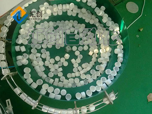 7、對瓶蓋進行整理,使之同向(口向上或向下)輸出。將瓶蓋輸入到理蓋機內。